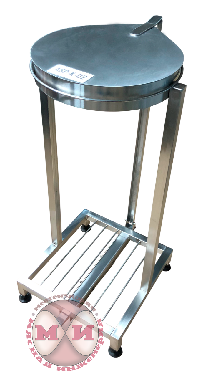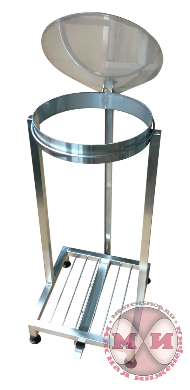 Модель оснащена регулируемыми опорами и решетчатым поддоном для опоры и поддержки мусорного пакета;