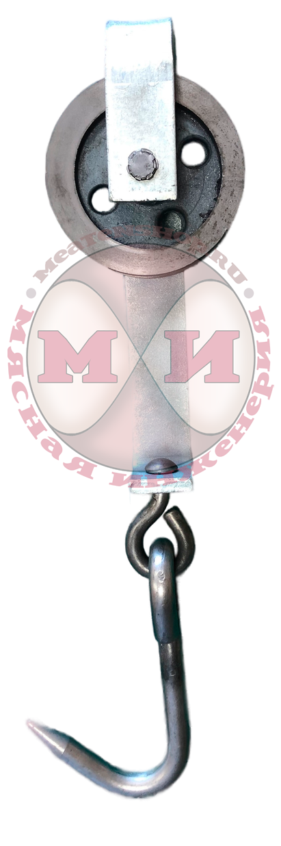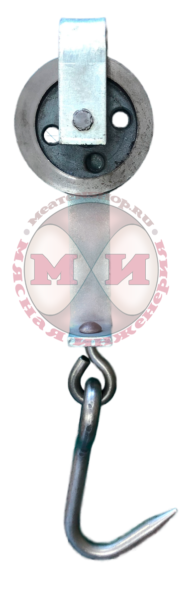 Троллей состоит из скобы, ролика и крюка. Ролик садится на подвесной путь, на крюк вешается мясо на кости. Перемещение троллея по подвесному пути производится вручную или с помощью конвейерной ленты.
