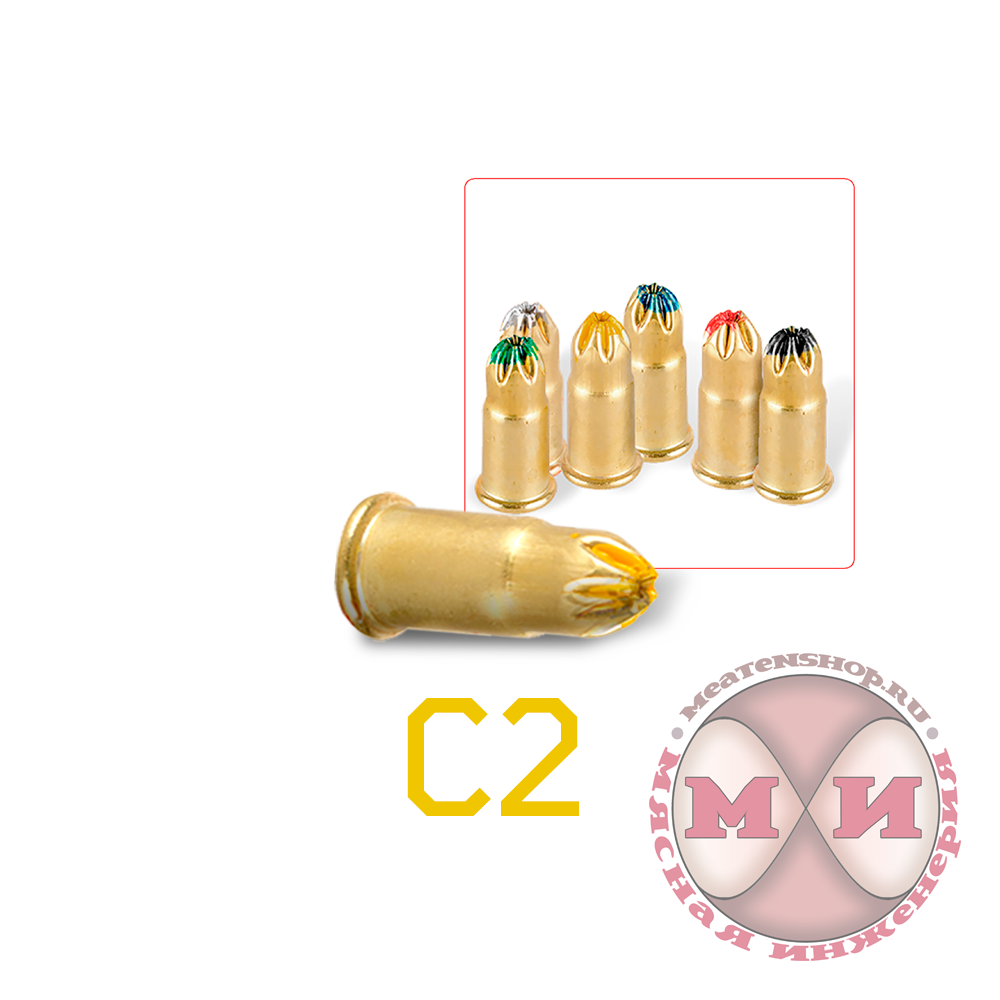 Цветовая маркировка кассеты и патрона указывают на мощность выстрела.