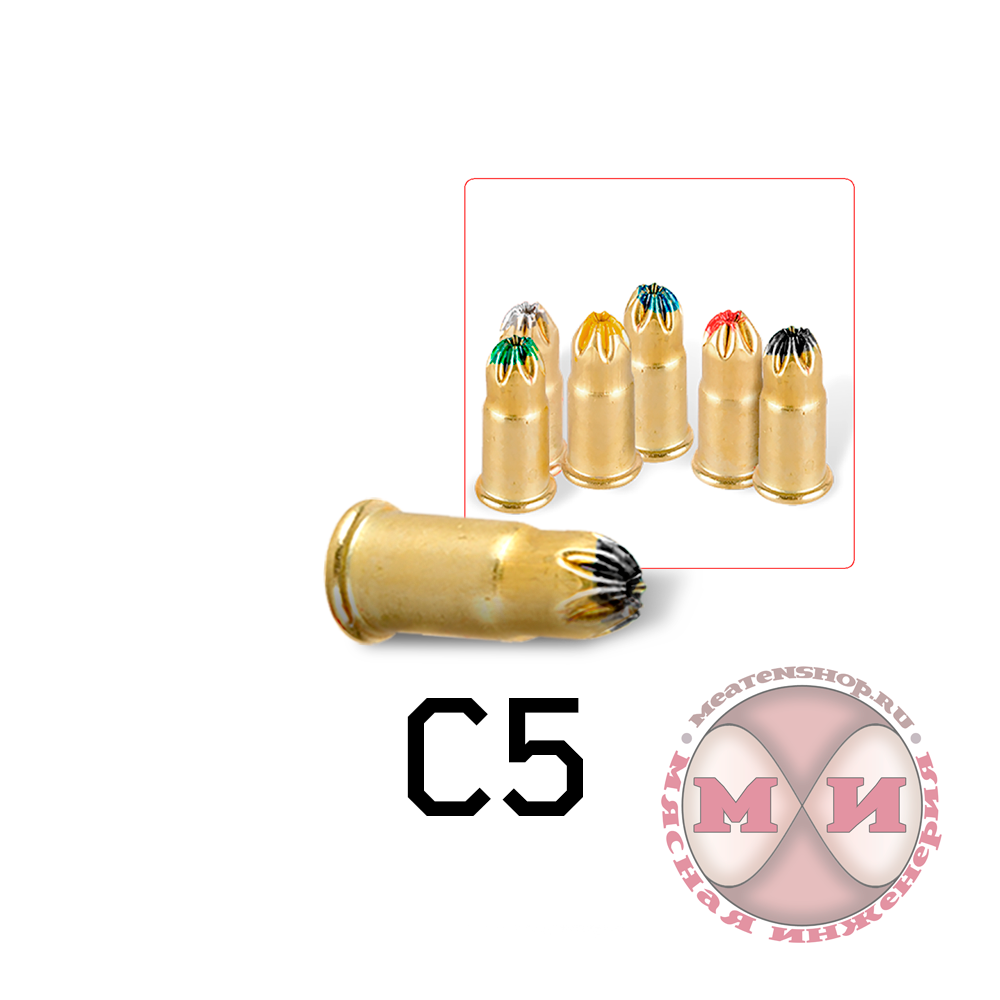 Цветовая маркировка кассеты и патрона указывают на мощность выстрела.