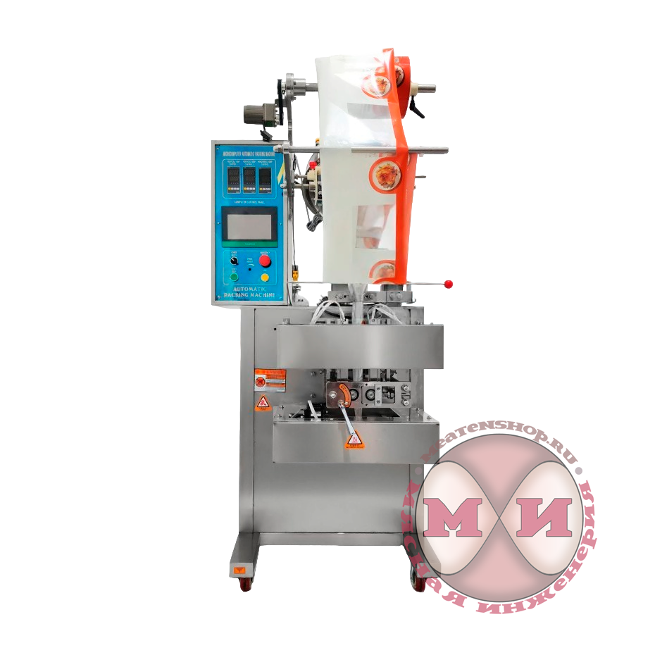 220В, мощность 2,2 кВт, 4-х шовный пакет, предел дозирования 15-100 мл, ширина пленки 100-320мм, длина пакета 30-90мм, производительность 30-60 пакетов/мин. Вертикальный.