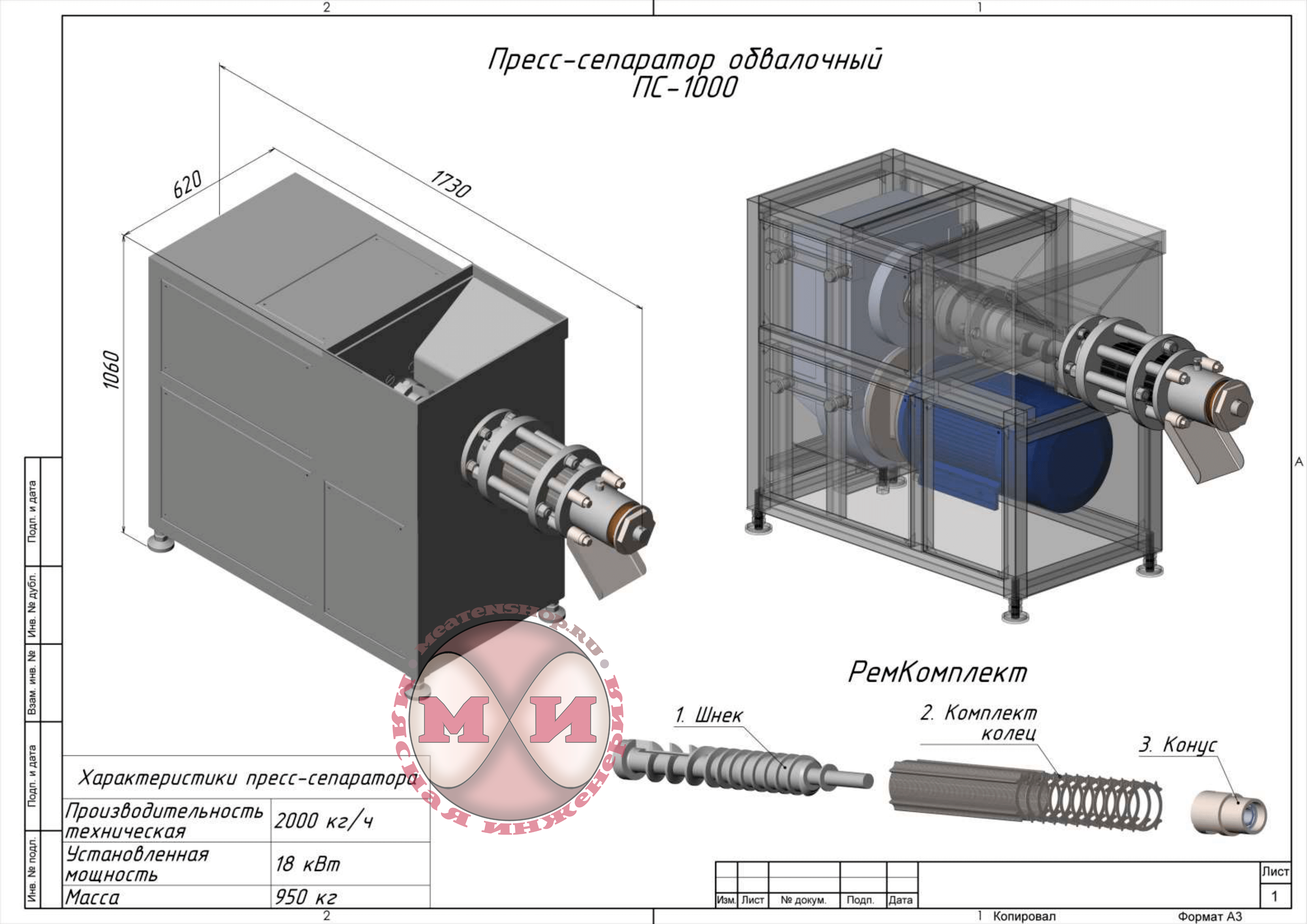 Обратившись в компанию "Мясная инженерия" вы можете получить консультацию и впоследствии купить «Пресс механической обвалки ПС-1000», запасные части и расходные материалы. Специалисты нашей компании помогут вам с монтажом и пуско-наладкой «Пресс механической обвалки ПС-1000». Поможем организовать доставку по территории России и таможенного союза.