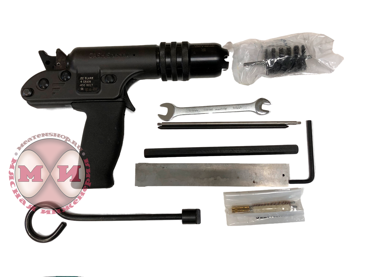 Устройство с патронным зарядом, курковым механизмом и ударным стержнем с автовозвратом. С проникающим действием. Рекомендуются патроны с калибрами 22 (5,6 мм) (4 грана (22 ЧЕРНЫЙ). Могут применяться к широкому диапазону животных — от домашней птицы до крупных быков