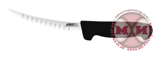 Длина лезвия - 15 см. Узкое, изогнутое лезвие, полугибкое, с желобками.
