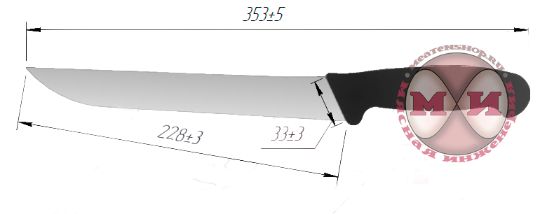 Длина лезвия - 23 см. Возможные цвета ручки: черный, красный, синий, зелёный, жёлтый.