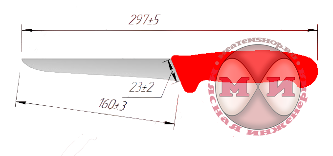 Длина лезвия - 16 см. Возможные цвета ручки: черный, красный, синий, зелёный, жёлтый.