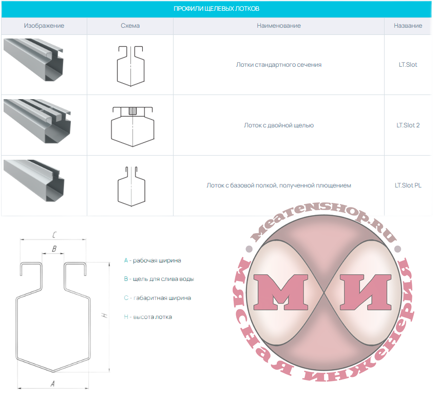 ПРОФИЛИ ЩЕЛЕВЫХ ЛОТКОВ: