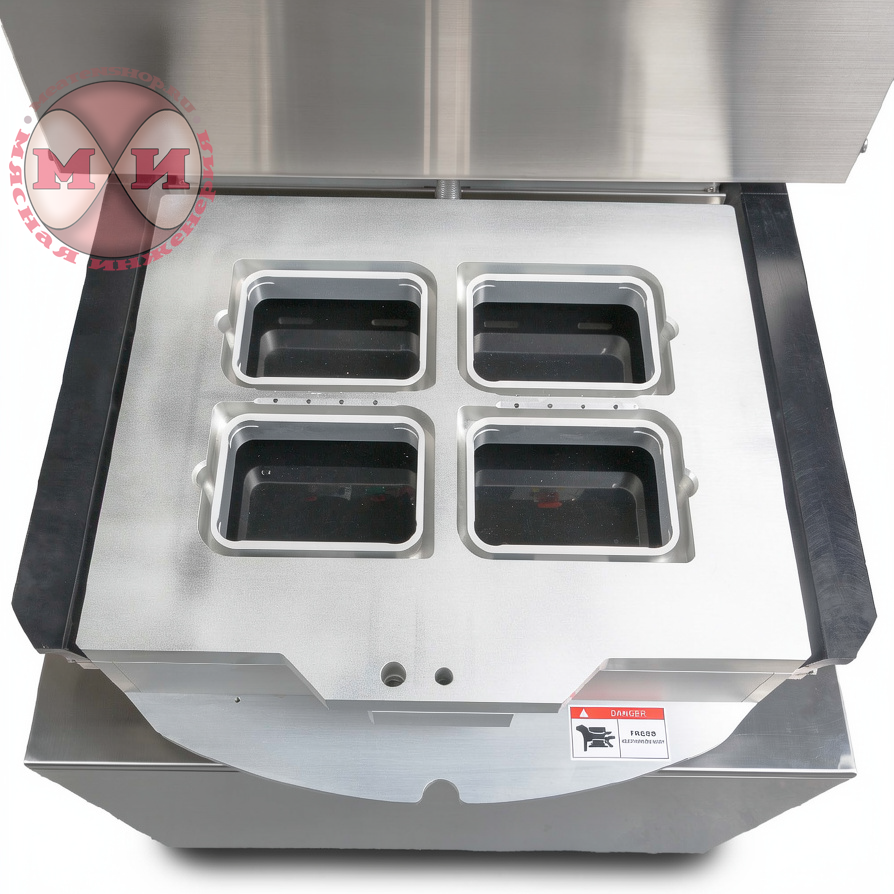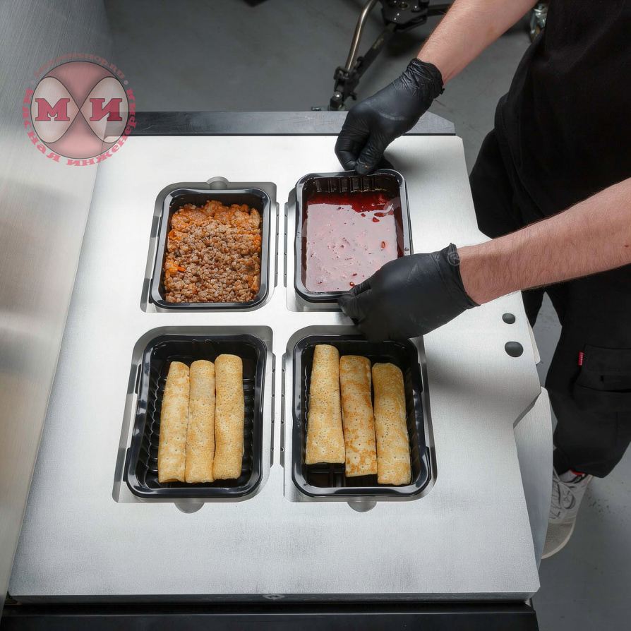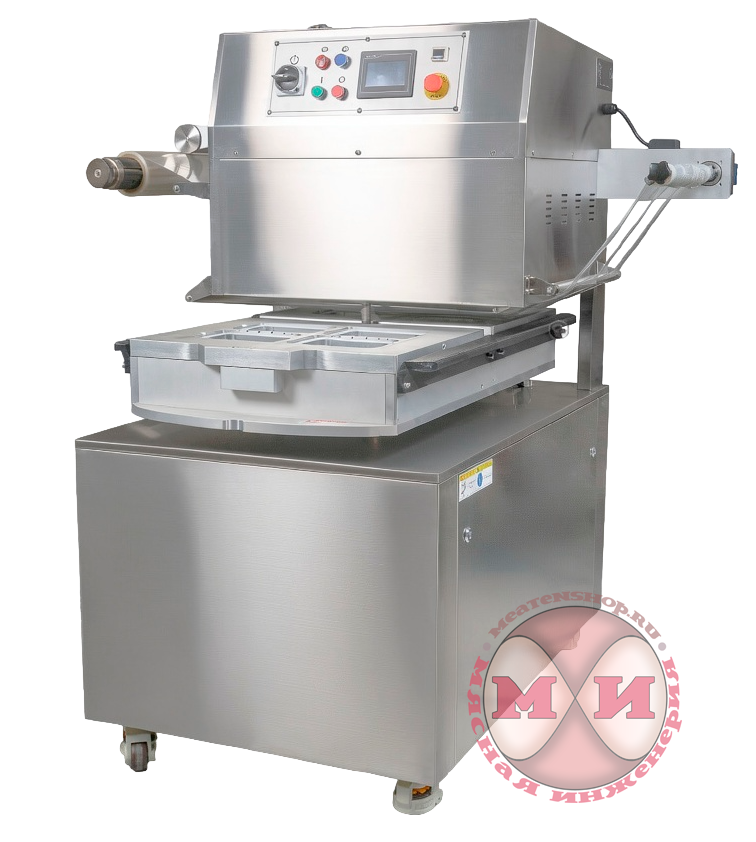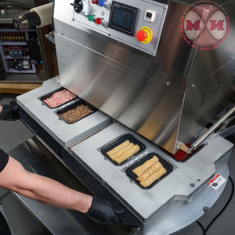 380В, Корпус из нержавеющей стали, Ротационный, с функцией газонаполнения и вакуумирования, Возможность выбора функционала: MAP (газомодифицированная среда + вакуумирование + запайка или только запайка. 4 лотка за цикл.